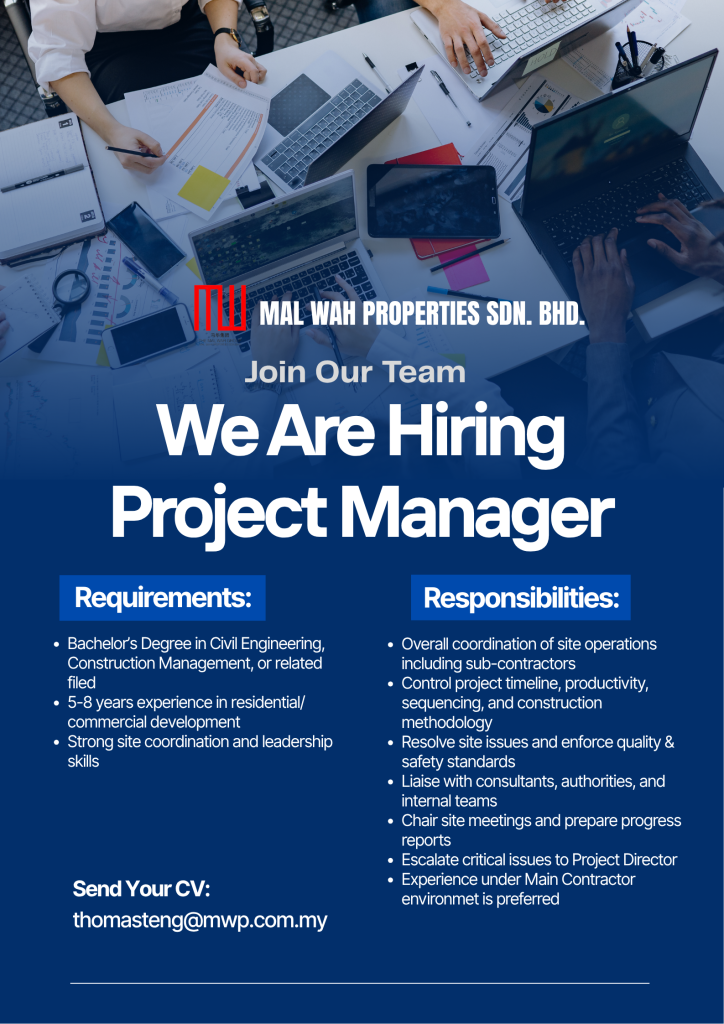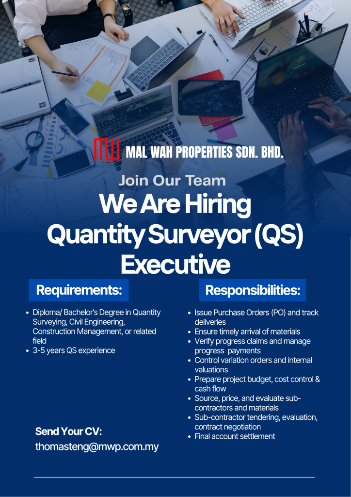 UncategorizedWe Are Hiring Quantity Surveyor (QS) Executive Leave a Comment / Uncategorized / By malwah_admin